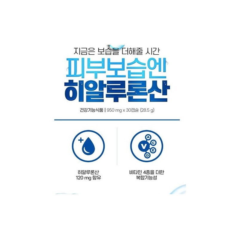 Hyaluronic acid skin moisturizing 950mg 30 capsules, 1 box, 1 month supply / 히알루론산 피부보습엔 950mg 30캡슐 1박스 1개월분