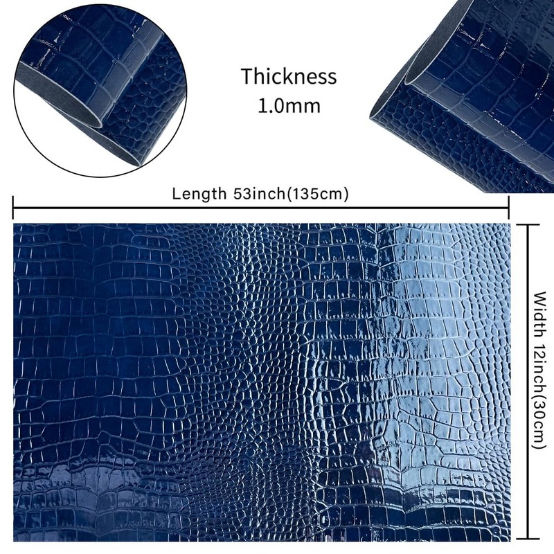 HYANG Dark Blue Glossy Embossed Crocodile Texture PU Faux Leather Roll 12 "x 53" Very Suitable for Making Crafts, Leather Earrings, Different DIY Projects