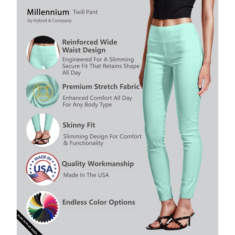 Hybrid & Company Super Comfy Stretch with Full Elastic Waist Pull On Millennium Twill Pant KP44972 Mint L