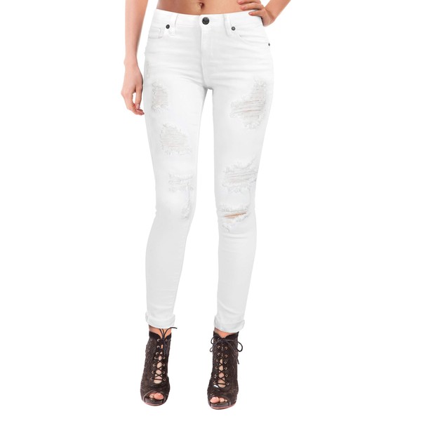 Hybrid & Company Women's Butt Lift Super Comfy Stretch Ripped Skinny Jeans P37354SK White 9