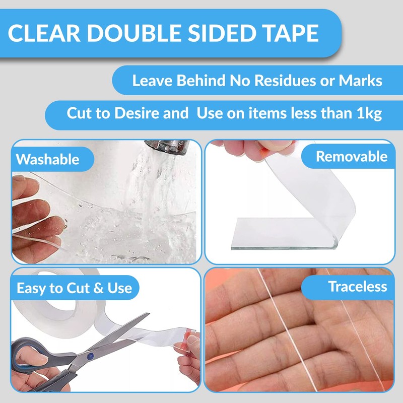 - Widely Versatile Use: Our Nano Tape Double Sided Tape Is Perfect For Hanging Things Up Maintaining A More Organised You! Perfect for uk number plate, it's clear glue and thin for wall stripes and hanging balloon, picture frame, and its an alternative to comando.