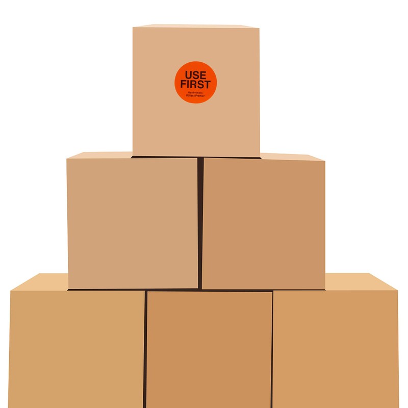 • Orange "USE FIRST"Label is printed in English, French and Spanish