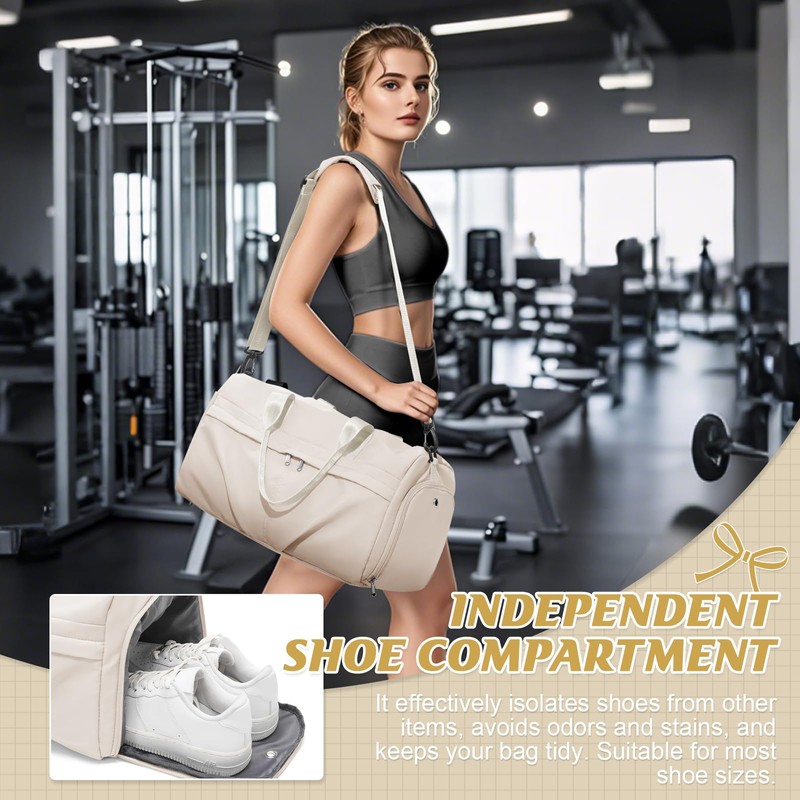 HYC00 Sports Gym Bag Womens Mens with Shoes Compartment & Dry Wet Separated, Weekend Travel Duffle Bags Overnight Bag for Women,Waterproof Holdall Hospital Bag Carry on Hand Luggage for Swimming,Beige