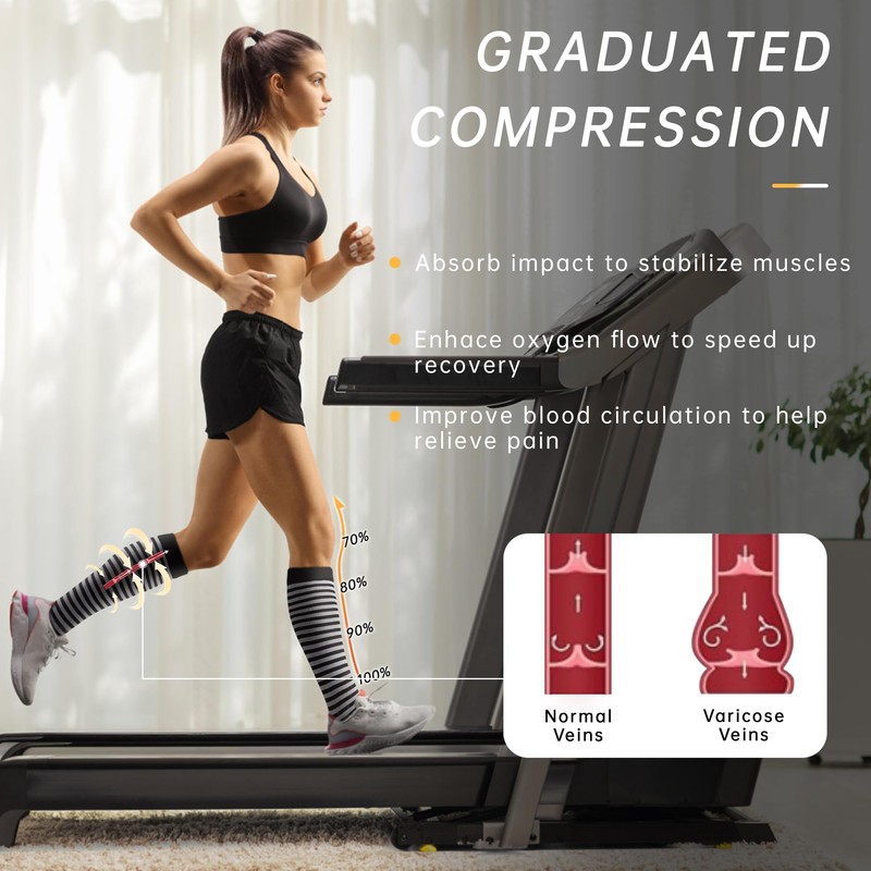 - Support & Recovery: Energizes tired feet and legs. Compression socks are pain relief and fast recovery, increase energy, prevent swelling, all day comfort. Our design is ergonomic to give comfort while keeping the style. Provides graduated compression to support your legs, reduce fatigue, soreness, cramping and prevent injuries at the same time