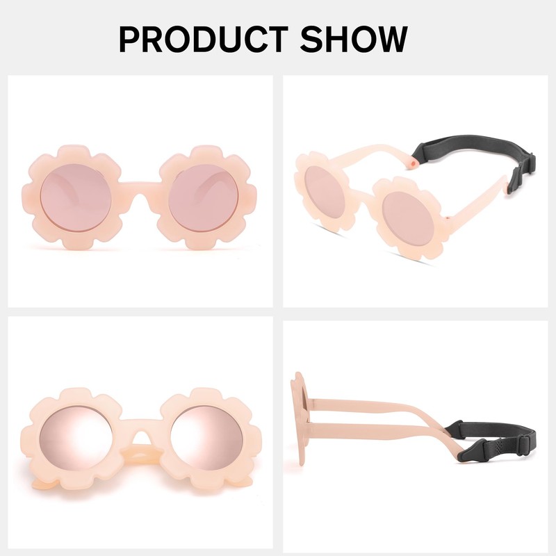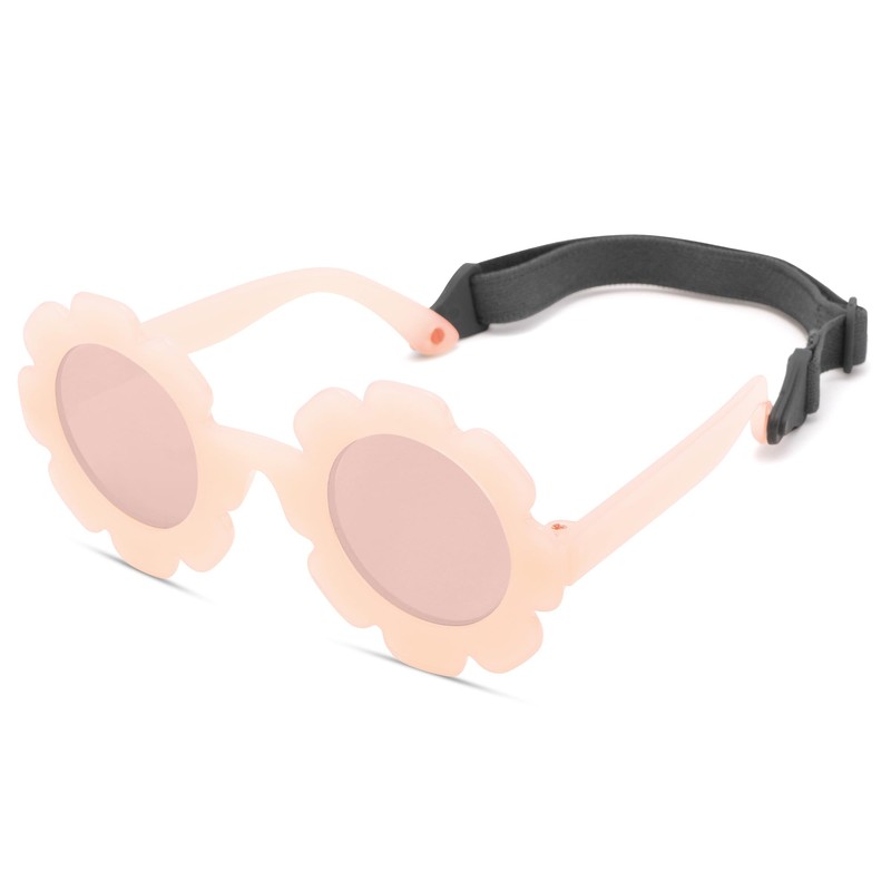 Hycredi Flexible Bendable Flower Baby Polarized Sunglasses with Strap for Newborn Infant Boys Girls Age 0-24 Months-Jelly Pink/Pink Mirror