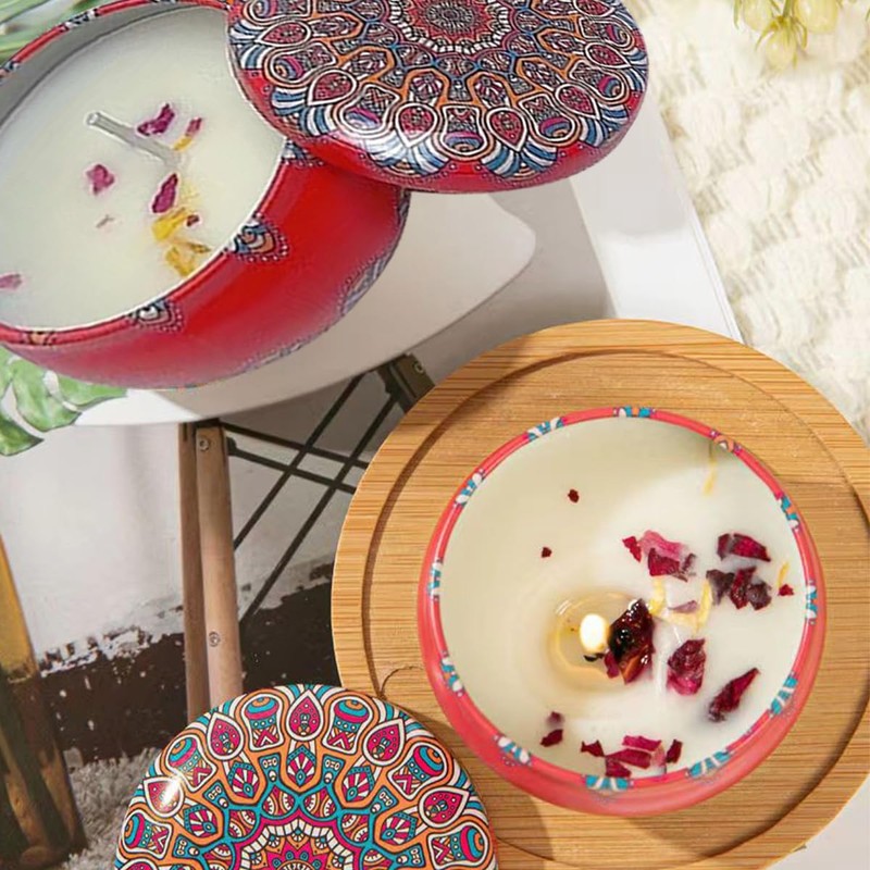 - [PORTABLE CANNED CANDLES]: Our travel tin candles not only offer beautiful designs but are also lightweight and easy to carry. Whether you want to create a cozy atmosphere at home or bring them along for a special event, these portable candles are perfect for any occasion. These candles are perfect for creating a peaceful ambiance during meditation, yoga, or bath time.
