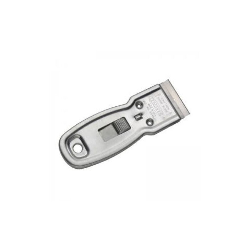 Ergonomically engineered shape for better grip and precise control. Large ribbed control button for safer operation. Blade track design minimizes clogging for positive blade extension and safe retraction. Blade at 5º offset to get under paint. One blade included.