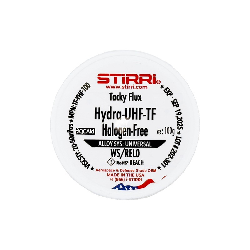 STIRRI Hydra-UHF-TF is a worlds first halogen-free solder flux with water-soluble residue. Traditionally products with water-soluble residue are meidum or high activity, Hydra-UHF is L0 but also halides-free and halogen-free featuring some of the unique properties used by the OEM manufacturers for BGA rework/reballing. This solder flux ensures no copper mirror breakthrough and has a low electrochemical migration of less than 1 decade drop.
