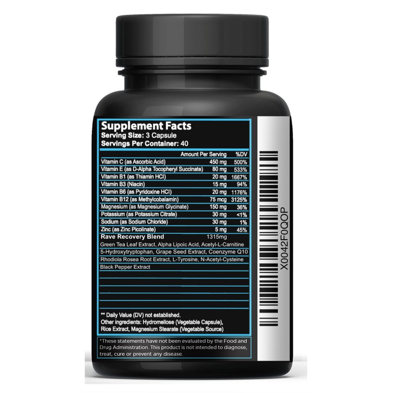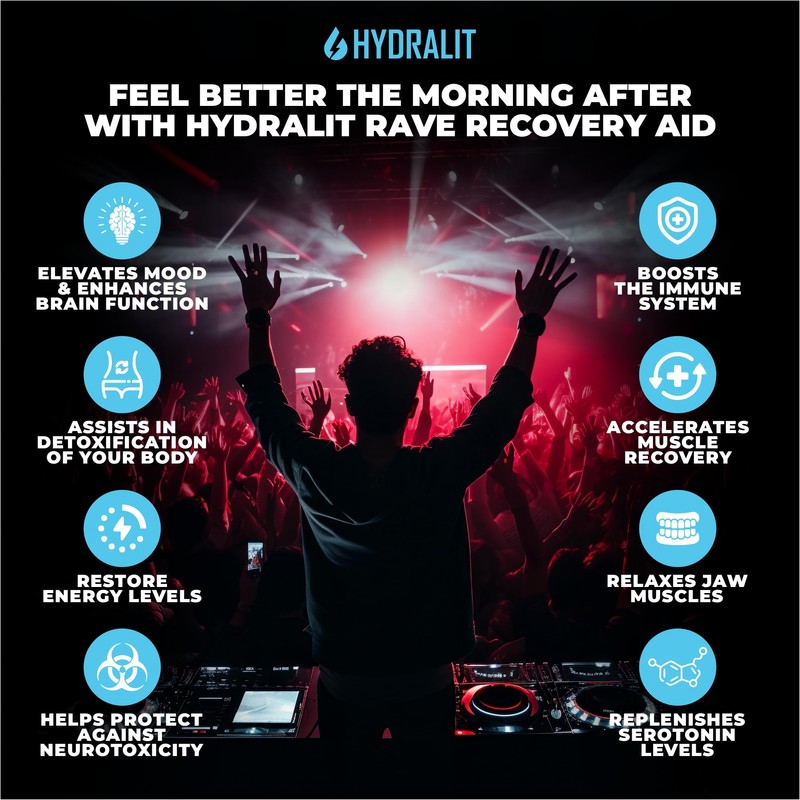 Hydralit Rave Recovery Aid Vitamins After Party Relief Pills Music Festival Accessories Rave Essentials 5-HTP Supplement Electrolytes Hydration Better Mornings Serotonin Energy Hangover 120 Capsules