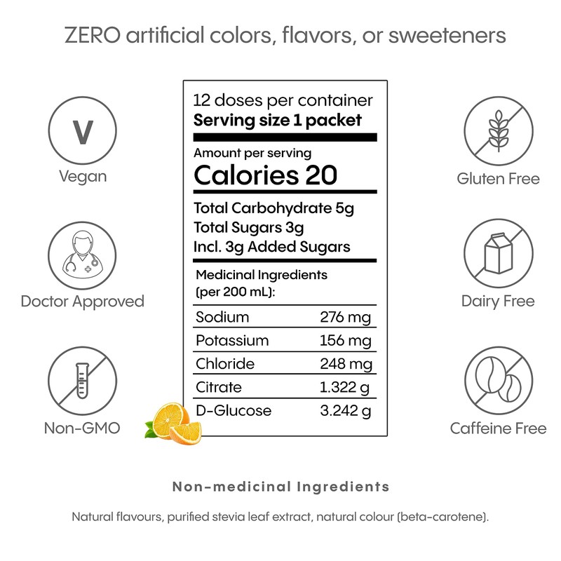 HydraLyte Electrolyte Powder, Low Sugar Electrolyte Packets Designed for Rapid Hydration, Safe Hydration for All Ages - Made with All Natural Ingredients, 36 Servings, Orange Flavour