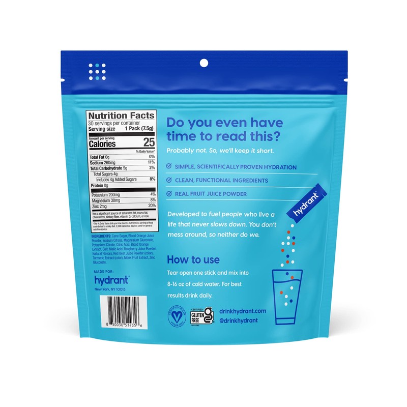HYDRANT HYDRANT Hydrate, Individual Hydration Electrolyte Powder Stick Packets with No Artificial Sweeteners, Colors, or Fillers (Fruit Punch, 30 Pack)
