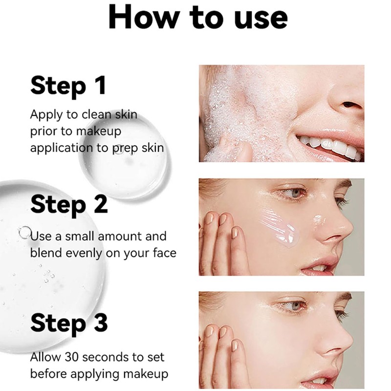 - 【Moisturizes & Nourishes】This face primer can lock in skin moisture, it forms a protective skin barrier to protect the skin from damage. The hydrating primer fills in pores for a smooth skin surface and makeup application without snags.