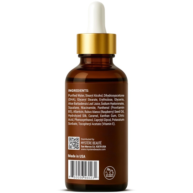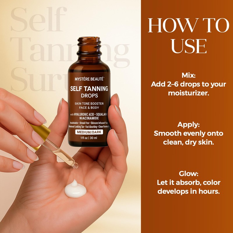 Hydrating Self Tanning Drops – MEDIUM/DARK – Face & Body Glow with DHA, Hyaluronic Acid, Niacinamide – Buildable, Streak Free Tan – MYSTÈRE BEAUTÉ – 1 fl oz