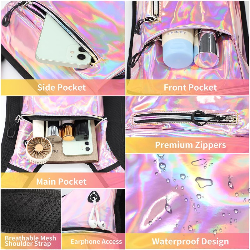- FESTIVAL OPTIONS - This is bright, flashy and stylish backpack.It's 3 pockets (on the front) plus a insulation compartment at the back for storing your important items.A separate insulated compartment that does a good job of keeping the wet away from the dry stuff and helps to maintain the water temperature.The reflective finish adds safety to your hike or walk.Engineered with state-of-the-art laser technology, this advanced pack is the ultimate companion for professionals and enthusiasts alike.