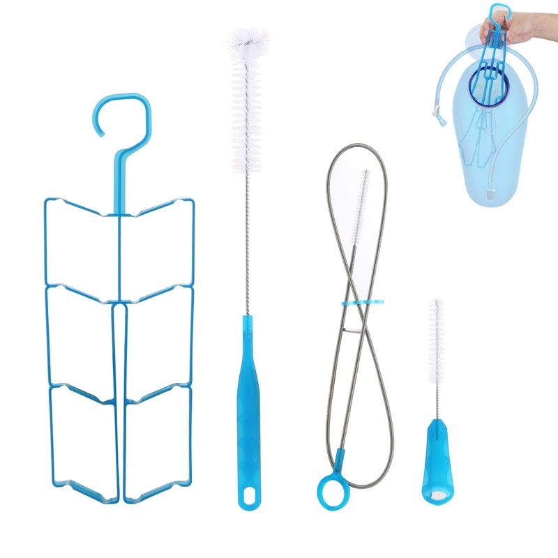 - 4-in-1 Complete Kit – Hydration Bladder Cleaning Kit Compatible with Camelbak bladder, includes a flexible long brush, small brush, long handle brush, and collapsible drying frame for full water bladder maintenance