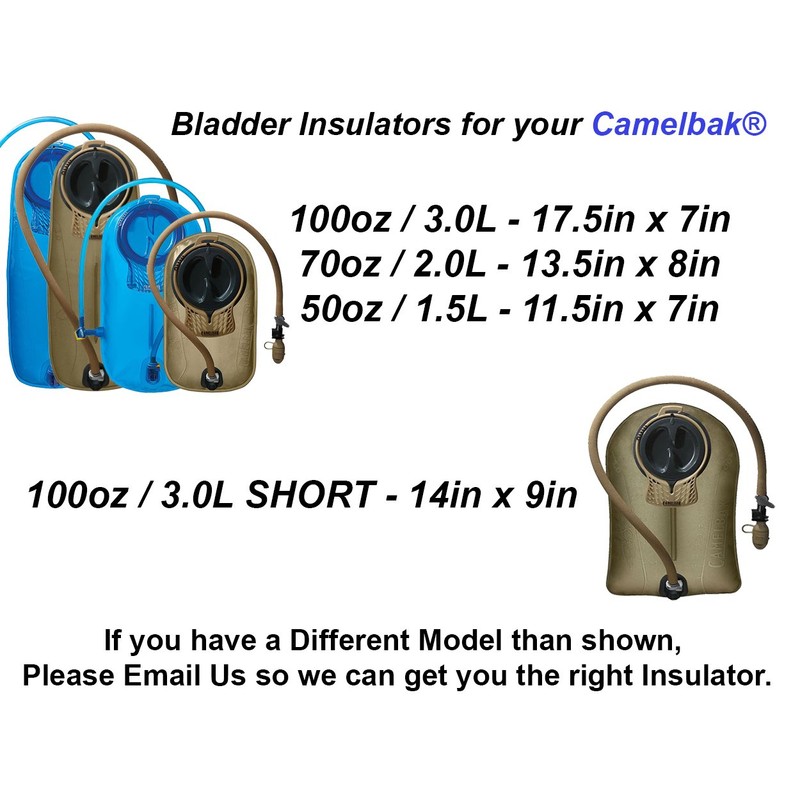 Hydration Tube Covers Bladder Insulators are Compatible with Camelbak Reservoir Water Bladder. Will fit MIL Spec Antidote and Crux