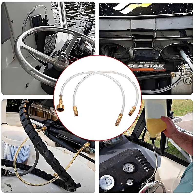 - Function: Transparent hose helps to observe the flow of air bubbles, making the bleeding and filling process easier and more efficient, the whole steering system remains sealed during the bleeding process. Hydraulic steering inflation kit helps to easily change marine hydraulic fluid while keeping it clean