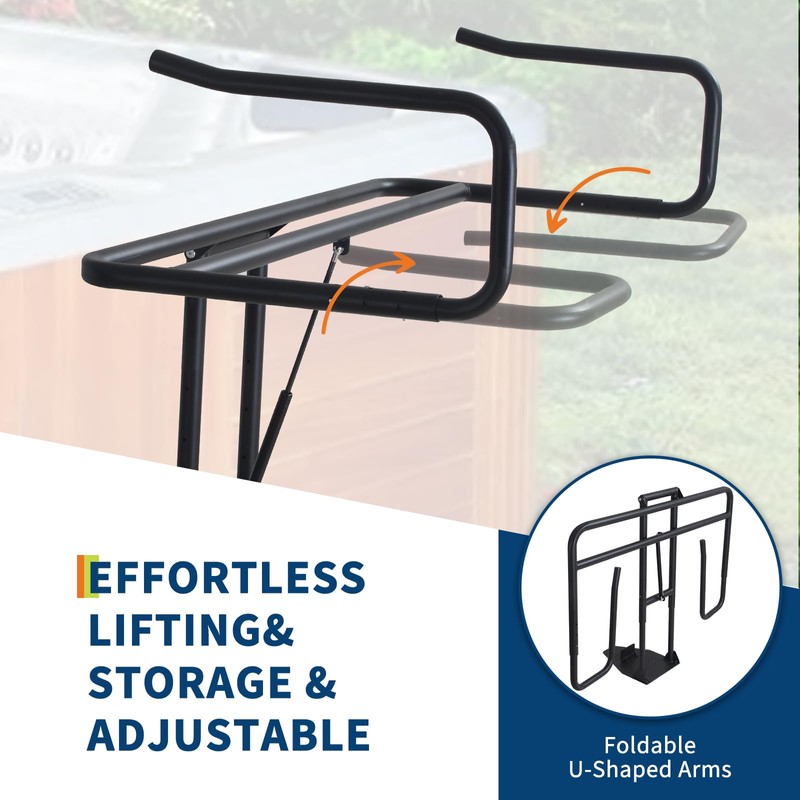 - 【Space-Saving Storage】 Pool cover lifting is designed to take up minimal space. Hot tub cover holder comes with foldable U-shaped arms, providing perfect solution for space-saving storage when not in use and making it a great choice for smaller hot tub areas.