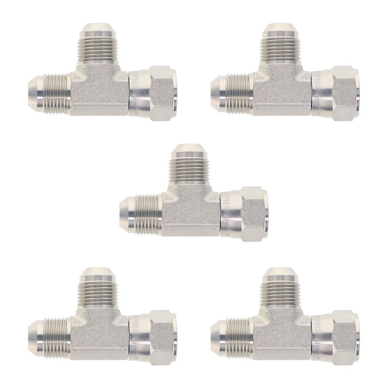 • 6602-08-08-08-PK05 | Run Tee 1/2" JIC (3/4"-16 thread) Male x 1/2" JIC (3/4"-16 thread) Female Swivel x 1/2" JIC Male | Swivel Hydraulic T Fitting
