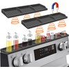 - Space SaverMagnetic shelf for stove Perfect for organizing your spices,holding condiments, no more getting mess or searching for the spice you need while cooking! Shelf for back of stove Keeping all of the small things within close reach and won't take up valuable counter space. Creates more usable space in your kitchen!