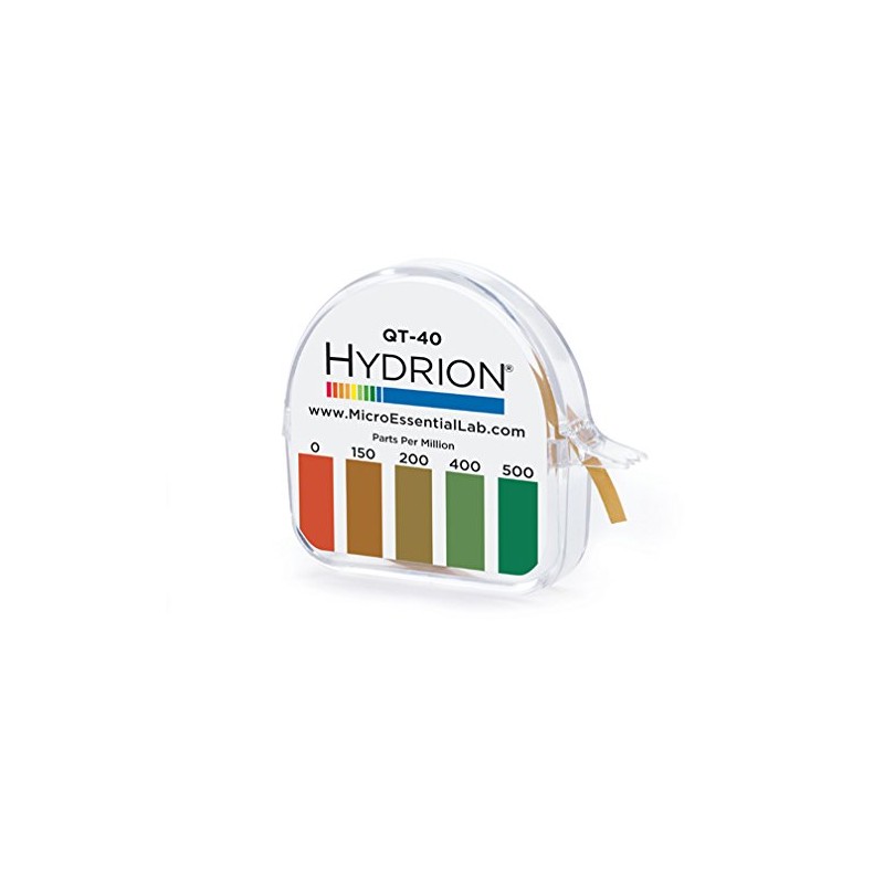 HYDRION Micro Essential Labs Hydrion QT-40 Quaternary Sanitizer Test Tape 15 feet Roll Quat Color Chart 0-500 ppm Range