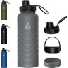 HYDRO H2O 32 oz Insulated Water Bottle, Water Bottles with Straw (Spout Lid & Screw Top) & Silicone Boot & Flex Handle, Wide Mouth Stainless Steel Water Bottles, Sports Water Cup, Travel Thermal Mug