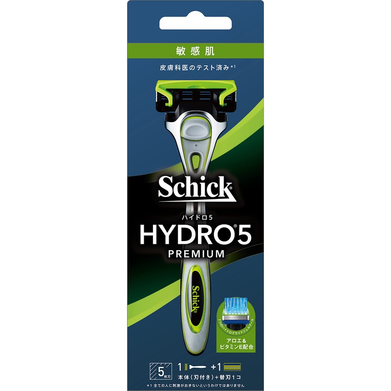 Hydro Schick Hydro5 Premium Sensitive Skin Holder (with Blade + 1 Replacement Blade) with Skin Guard 5 Blades, Green