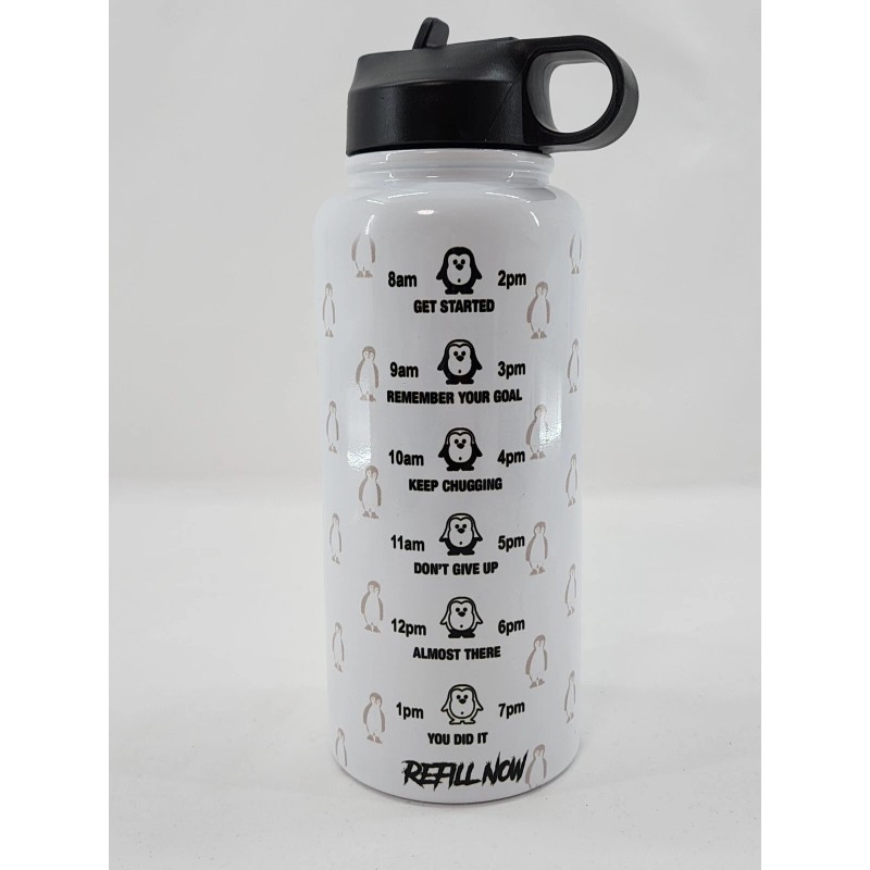 Hydro64 High 5 to the Face Penguin Time Tracker Water Bottle w/ Straw 32 oz 64Hydro