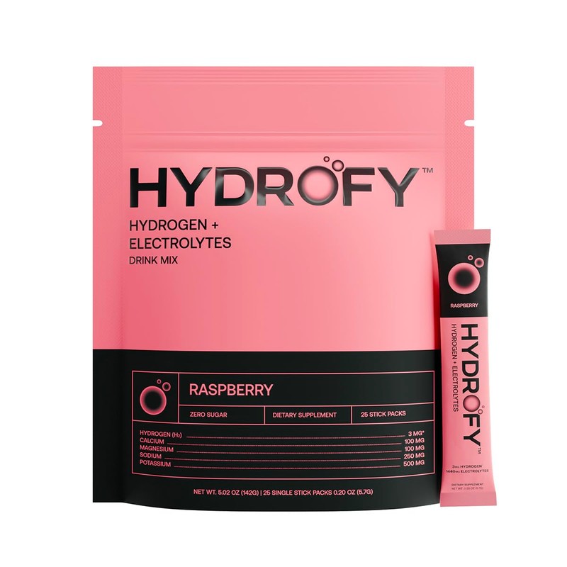 Hydrofy Hydrofy Hydrogen Water + Electrolytes Drink Mix | Superior Hydration Packets with Molecular Hydrogen (H2), Sodium, Potassium, Magnesium, Calcium, and Minerals | No Sugar | Raspberry 25 Ct