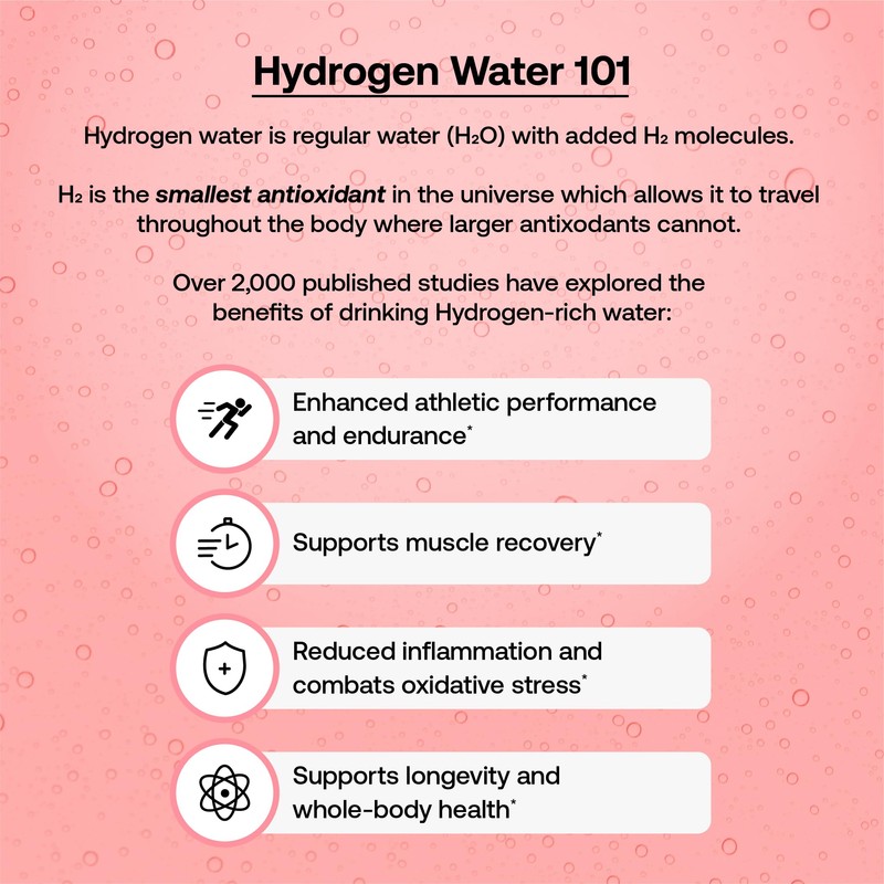 - Hydrogen Water for Antioxidant and Cellular Health: Packed with H2 hydrogen, the smallest antioxidant, this dry water hydration powder penetrates deep into cells to combat oxidative stress, reduce inflammation, and boost your immune system. Perfect for athletes and those seeking needed hydration support with hydrogen water bottle, it promotes overall well-being and longevity.