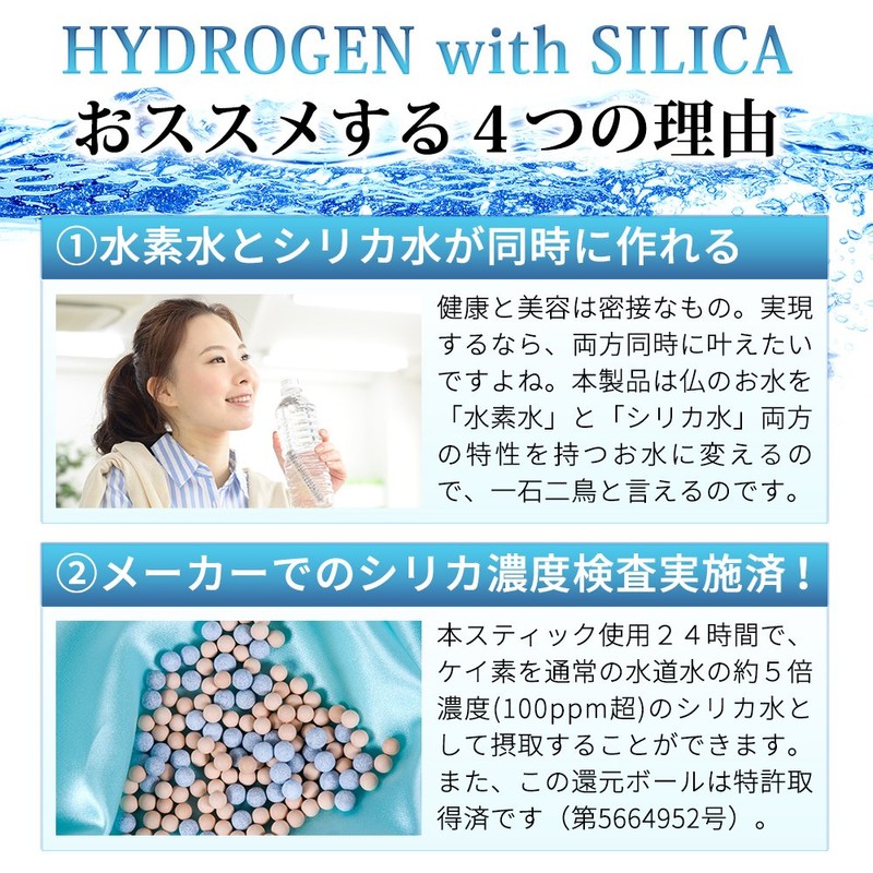 - Beauty and Health Awareness You can drink silica water and hydrogen water every day. Just put it in a plastic bottle. HYDROGEN with SILICA is a new release of hydrogen silica stick, which is popular on magazines and TVs