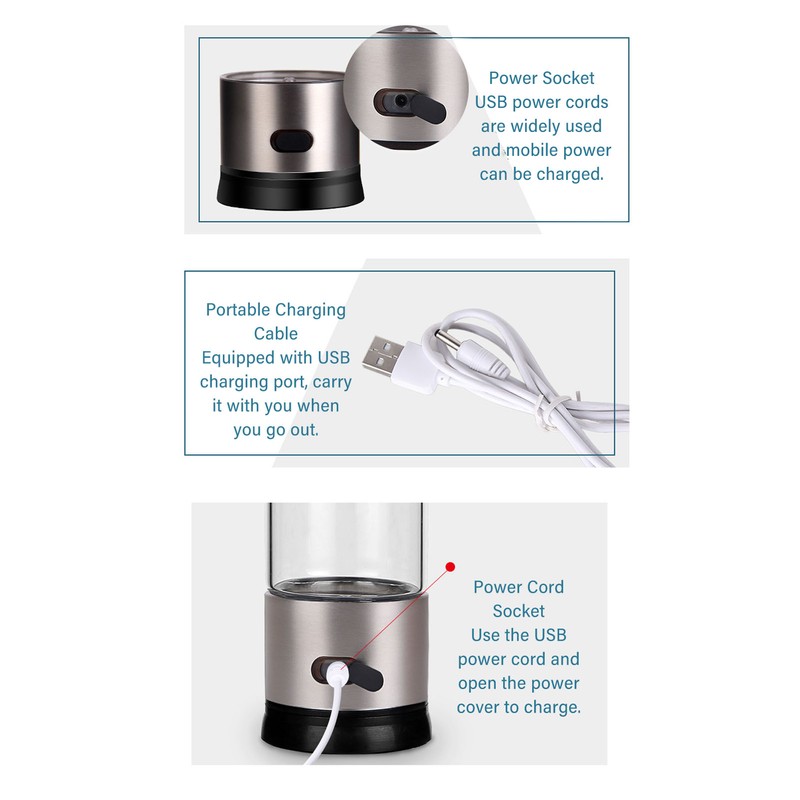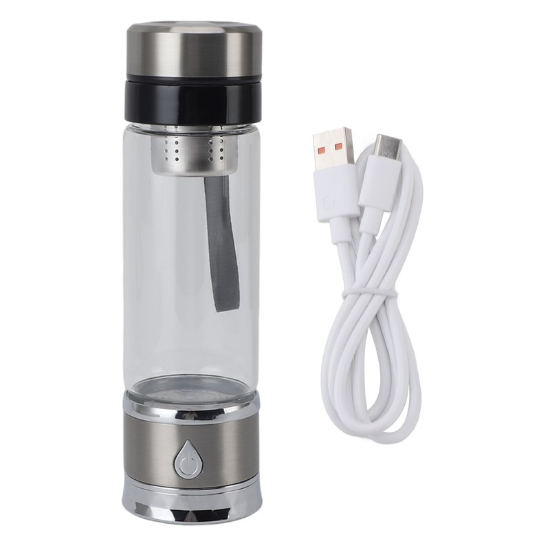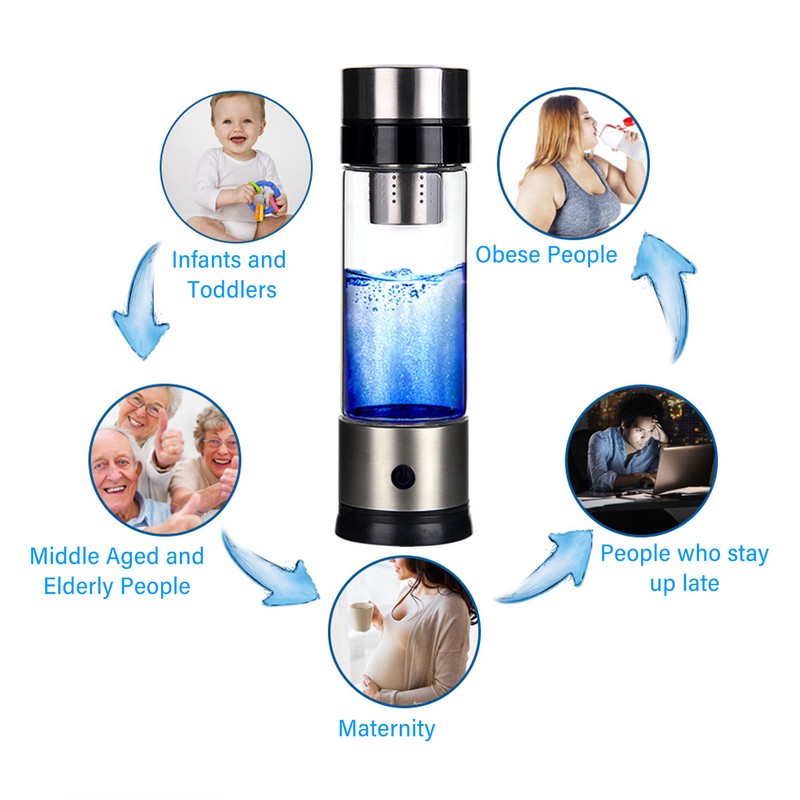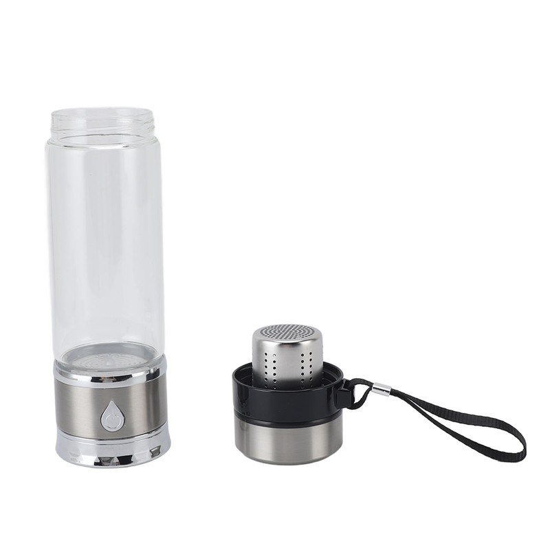 1、High Efficiency: This hydrogen water generator uses advanced technology to rapidly generate up to 1600 PPB of hydrogen ions in a single cycle, turning ordinary drinking water into hydrogen ion rich alkaline water and reducing oxidative stress. 2、Sturdy And Durable: This hydrogen water ionizer machine is made of excellent quality stainless steel and high borosilicate glass material, which is transparent, safe and healthy. 3、420ML Large Capacity: This hydrogen water machine generator features a large 420ML capacity, which can satisfy the needs of the whole family. 4、Multifunctional: This hydrogen water machine is multifunctional and produces hydrogen water that reduces oxidative stress, slows down aging, strengthens the immune system, boosts metabolism and nutrient absorption, increases energy, promotes muscle recovery, and improves memory and sleep quality. 5、Easy To Operate: This hydrogen water bottle generator is designed with one button operation, which is very easy to operate and suitable for use in many situations.