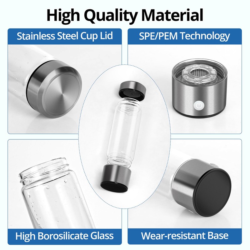 - [Split & Convenient Design]: With the split and convenient design, this hydrogen water bottle can be easily disassembled and assembled, and the process of using it is simple and quick. Whether it's filling water, cleaning or replacing parts, it can be done quickly, which greatly improves the user's experience. It is especially suitable for daily use in the family, traveling and carrying a variety of scenarios to meet the user's convenient needs.