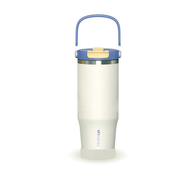 HYDROUP 36 oz Water Bottle with 2-in-1 Multifunctional Lid – Insulated, Leakproof, BPA-Free, Silicone Base, Perfect for Sports, Travel, Gifts for Men & Women (Cream, Blue and Yellow)