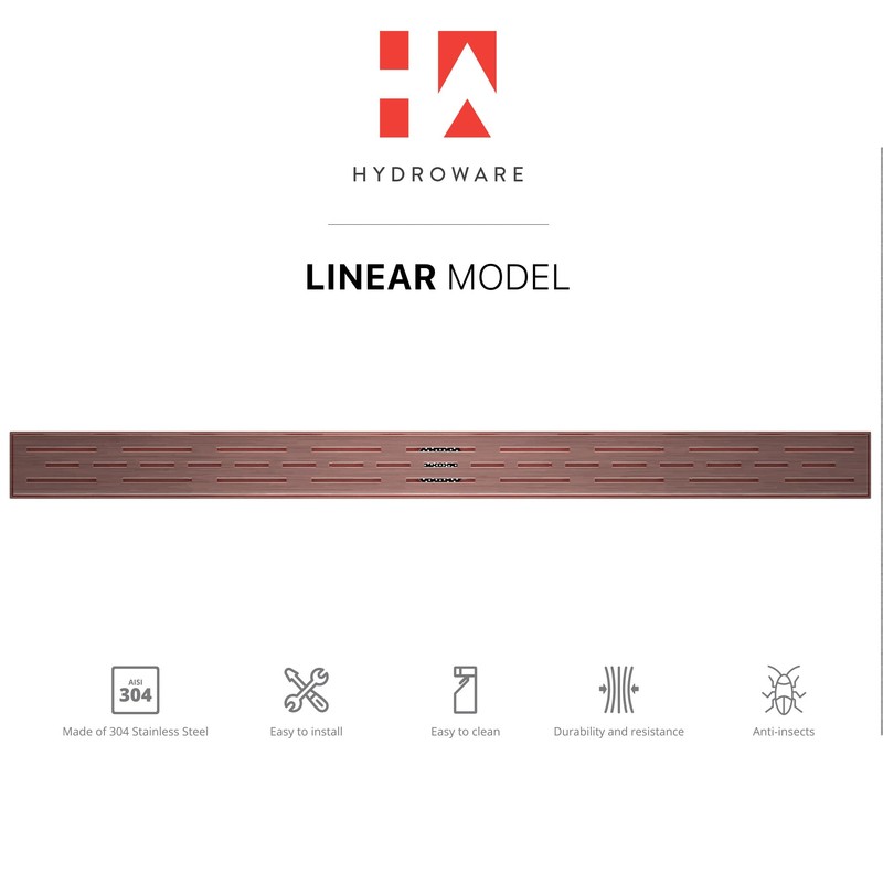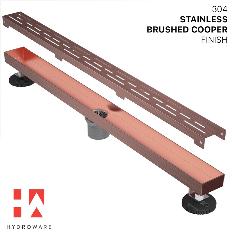 Hydroware Linear Shower Drain - Stainless Steel Rectangular Shower Floor Drain with Removable Patterned Grate, Hair Strainer, Threaded Adapter (Copper, 36 Inches)