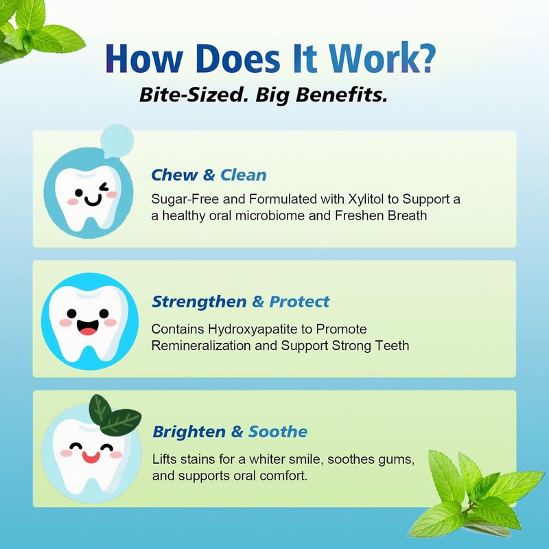• 60-Piece Value Pack:One bottle of sugar-free Hydroxyapatite Gum with 60 pieces. Perfect for consistent daily use or sharing.