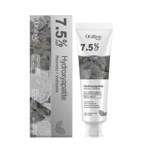 - Mild Ingredients: Hydroxyapatite toothpaste uk 7.5, with a mild formula, is suitable for people with sensitive teeth and mouth. Hydroxyapatite, the main ingredient of hydroxyapatite toothpaste 7.5, is a natural mineral that can gently clean the surface of teeth and remove plaque without irritating the gums.