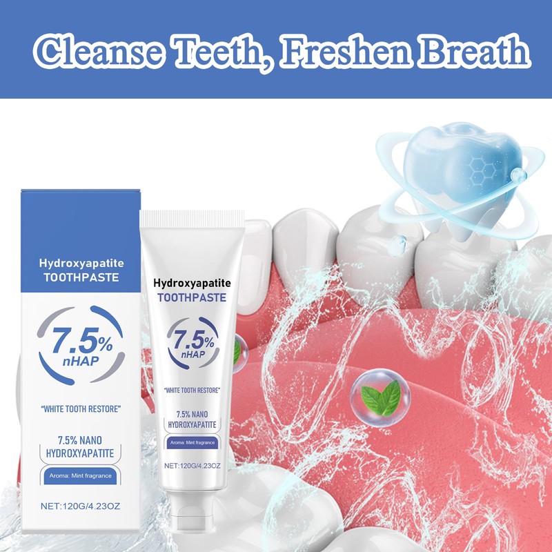- đGentle for Sensitive Teeth: Our hydroxyapatite toothpaste provides a gentle yet thorough clean, making it perfect for sensitive teeth without causing discomfort or irritation.This nano hydroxyapatite toothpaste supports overall oral health, keeping your teeth strong and your mouth feeling fresh with regular brushing.