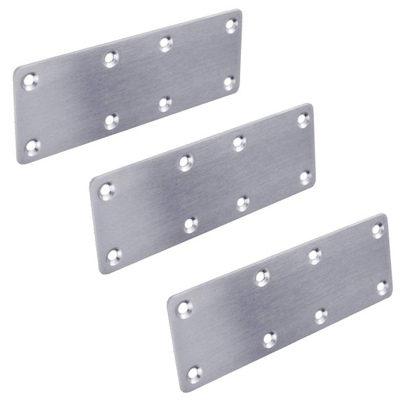 Hyever 3 Pieces Flat Straight Brace Bracket Steel Metal Mending Fixing Plate,Brushed Finish 5.4" × 1.9" × 0.08"