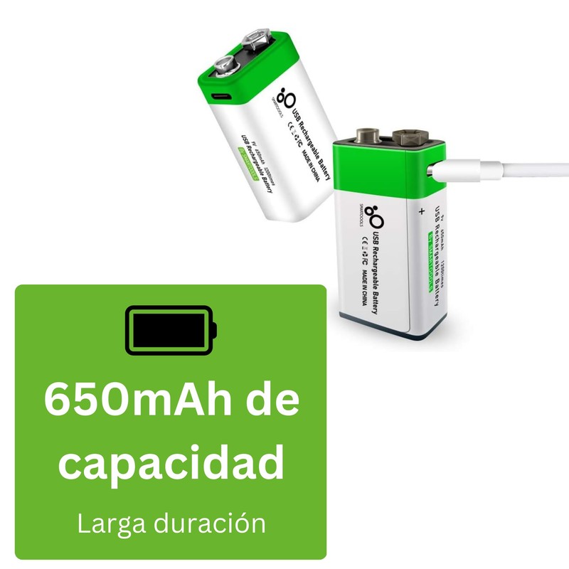 HYGE 2 Pilas 9V Recargables USB C 650mAh 9v Carga Rapida Alta Duración Se cargan en 1.5 Horas Ideal para Guitarras Electroacústicas, Pedales, Detectores de Humo, Juguetes y más