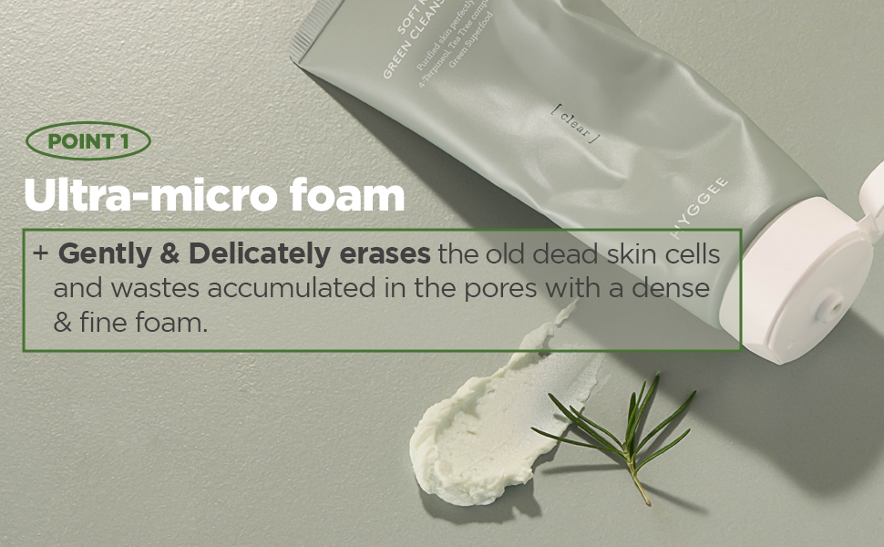 HYGGEE Soft Reset Green Cleansing Foam - Gentle Face Wash with Tea Tree Extract, Ultra Micro Bubbles Mild Facial Cleanser for Sensitive Skin - Soothes & Moisturizes Irritated, 5.07oz.