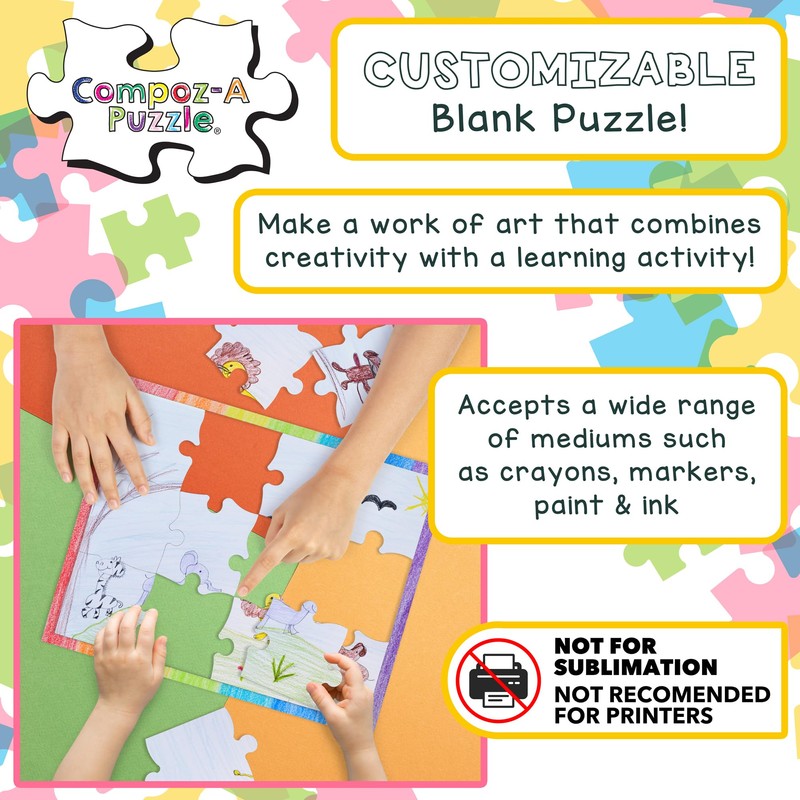 - BLANK JIGSAW PUZZLE – This Compoz-A-Puzzle is ideal for weddings, showers, birthdays, invitations, and classroom or home activities. Everyone, old and young, will love this 5.5 x 8 inch puzzle.