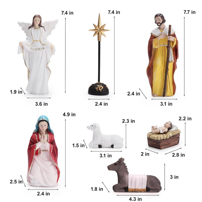 HYHFM Set of 7 Nativity Figurines, Sculpted Hand-Painted Nativity Figures, Nativity Sets for Christmas Indoor - Manger Scene Christmas Decorations