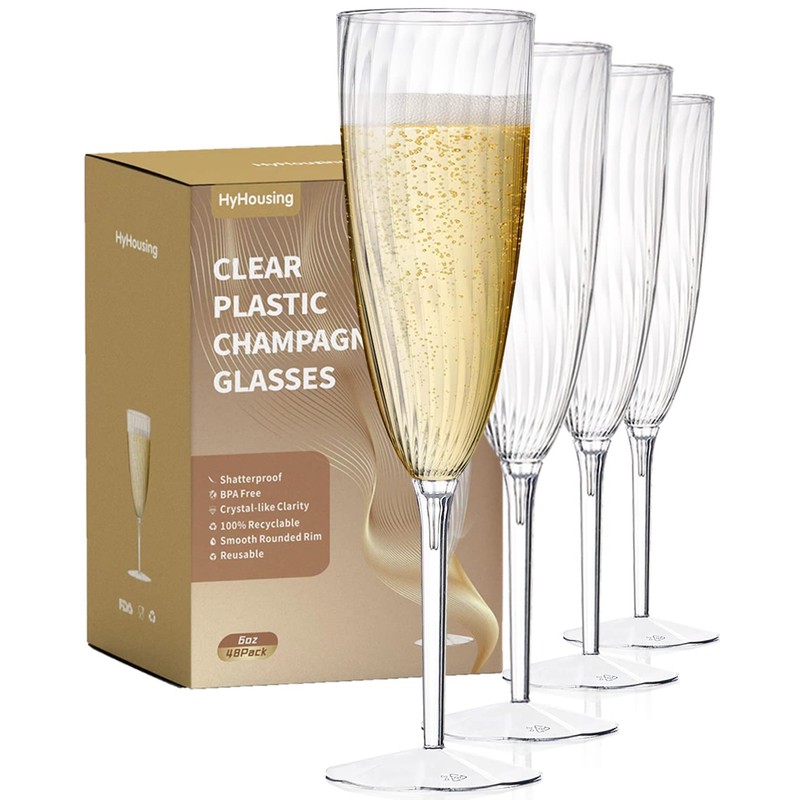 HyHousing 48 Plastic Champagne Flutes, Clear Disposable Plastic Champagne Glasses Reusable Wine Cocktail Cups for Home Daily Life Party Wedding Toasting Drinking Birthday(6 oz)