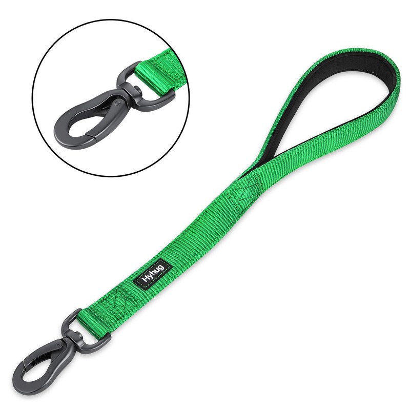 Hyhug Pets Upgraded Traffic Nylon 18 Inch Short Leash with Soft Neoprene Lined Handle for Medium Large Giant Breeds Dogs, Daily Use Walking and Professional Training. (Lime Green)