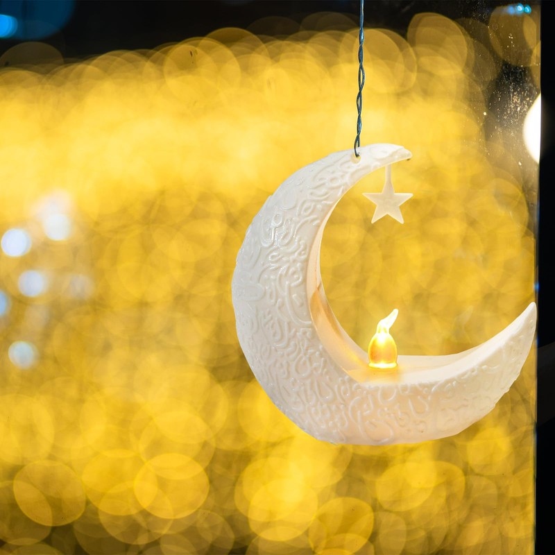 - Design: These Eid al Adha Mubarak lamps are designed in the shape of a moon, adorned with stars, and have Islamic runes on the surface to add texture, making them very high-end and exquisite