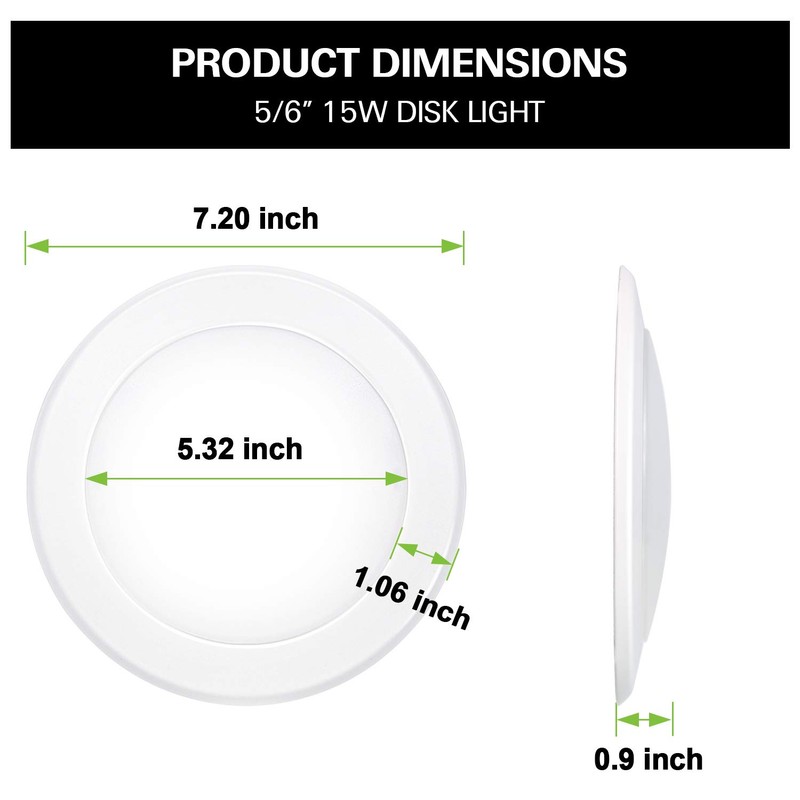 - ✅High Quality: This 6 inch led lights 90+ CRI technology provides near sunlight quality light for true color rendering and consistency inside your home. These led disk lights save up to $400 savings over the life of the fixture. Built to last with maintenance-free energy efficient LEDs with 50,000 hours of life, eliminating your need to use and replace bulbs.