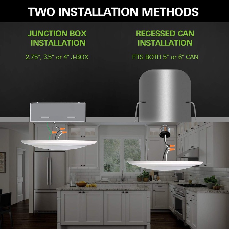 - ✅Easy Installation: LED disk light can be installed in any 5” or 6” recessed housing or any 2.75”, 3.5”, or 4” Junction Box, and also the ultra thin design provides a simple but elegant view making it extremely versatile for both retrofit and new installation in your home. Ideal using at kitchens, hallways, bathrooms, closets, laundry, porches and garage work rooms.
