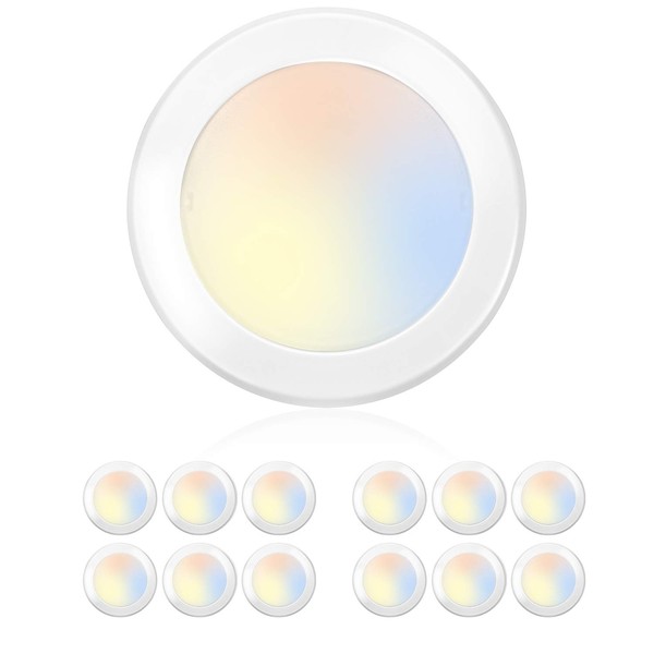 hykolity 5/6 Inch Selectable CCT LED Disk Light Flush Mount, 3000K/4000K/5000K Adjustable, Dimmable Recessed Retrofit Ceiling Light, CRI90, 1050lm, 15W, Installs Into J-Box or Recessed Can, 12 Pack
