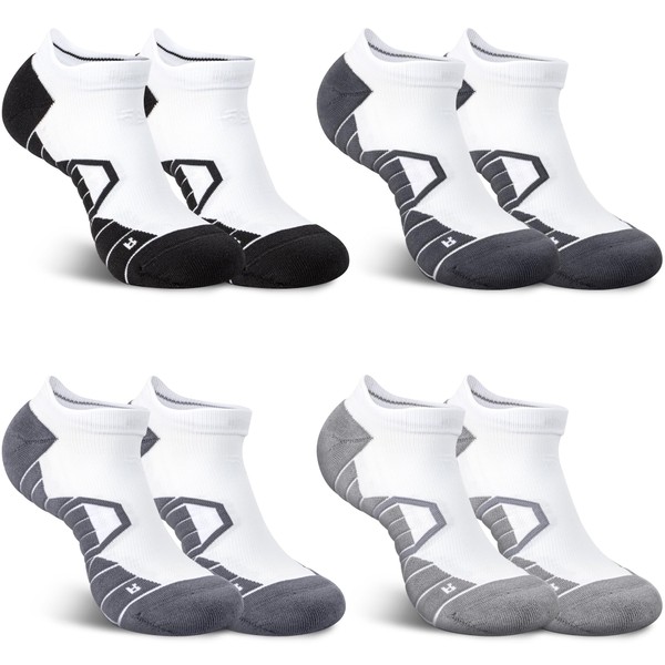 Hylaea Low Cut Socks for Running Sports Athletic Walking Golf Tie-dyed Pattern No Show Compression Black Grey White 4 Pairs Medium